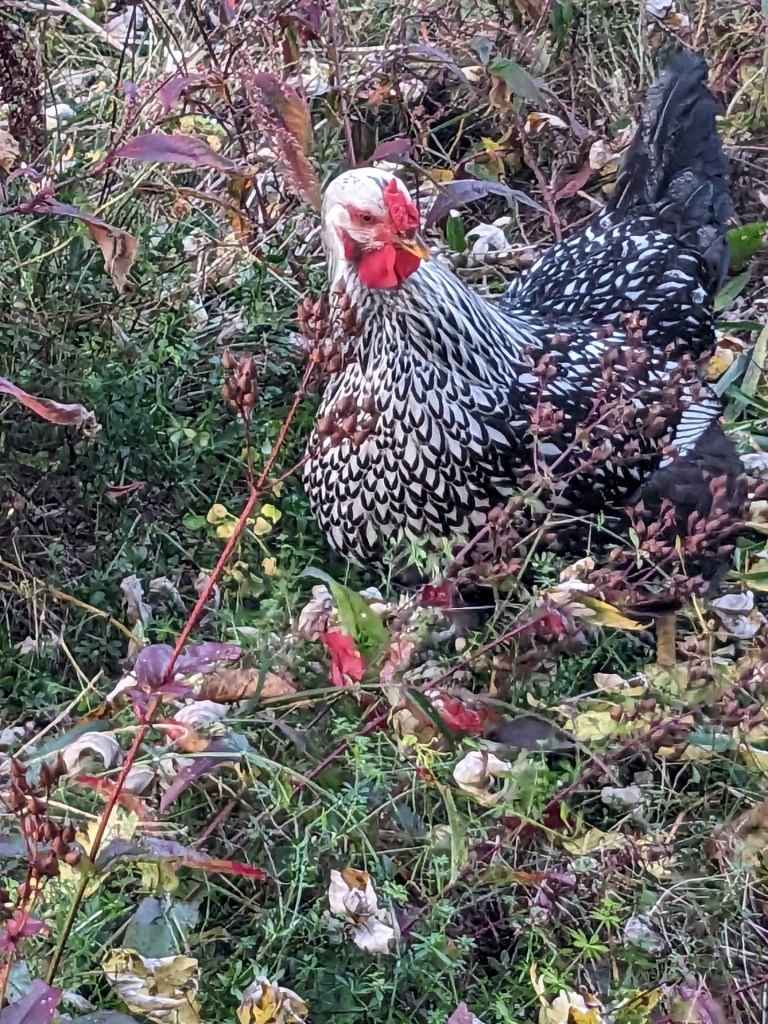 I can’t take credit for this of course. But I am thankful there’s no hen rebellion, picketing and rage. No hens threatening to burn my house down because of the inhospitable environment of winter. Humanity can learn a lot from nature, mom says.